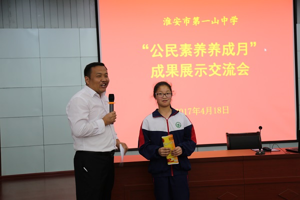 4月18日晚,我校在逸夫楼报告厅举行"公民素养养成月"成果展示交流,对为期一个多月的"公民素养养成月"活动进行总结,表彰优秀个人、优胜小组和文明班级,号召同学们向榜样学习,争做文明公民。