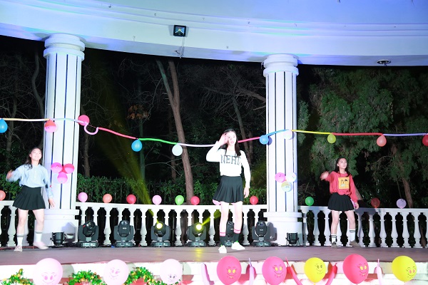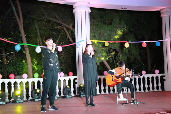 接下来的劲歌和热舞又为同学们带来了新一轮的视听盛宴。这样的狂欢夜晚,为同学们提供了一个暂时放下压力,展现自我,放飞梦想的舞台。在这第一山之巅、美丽的星空下,同学们听着动感的音律,跳着优美的舞姿;在这里,同学们用激情点燃自己的信心,用精彩展现自己的能力。相信经过这次活动,他们必定能够对社会生活有更深的体验,更加从容的面对自己未来的精彩人生。