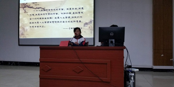 3月12日晚,初一年级语文组在智翼楼报告厅举行了以“传承中华文明,发扬爱国情怀”为主题的读书交流会,并特别邀请孙校长、王校长、秦相员老师、秦志军老师出席。