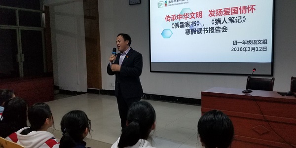 - 传承中华文明 发扬爱国情怀 《傅雷家书》、《猎人笔记》初一年级寒假读书报告会