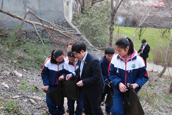 树木被春风摇醒,睁开睡眼,张开了柔嫩的臂膀,扭动着腰肢。伴着春天的步伐,孩子们来到了风景优美的第一山,迅速分成四组,在指导老师的带领下开始清理垃圾杂物,并装袋回收。途中,孙爸爸还给跟孩子们一起追溯第一山的历史,探寻植被特性,共赏人文景观,山上回响着孩子们的欢声笑语。
