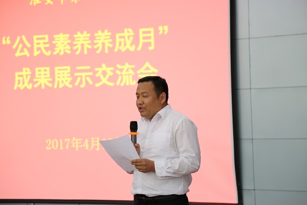 4月18日晚,我校在逸夫楼报告厅举行"公民素养养成月"成果展示交流,对为期一个多月的"公民素养养成月"活动进行总结,表彰优秀个人、优胜小组和文明班级,号召同学们向榜样学习,争做文明公民。